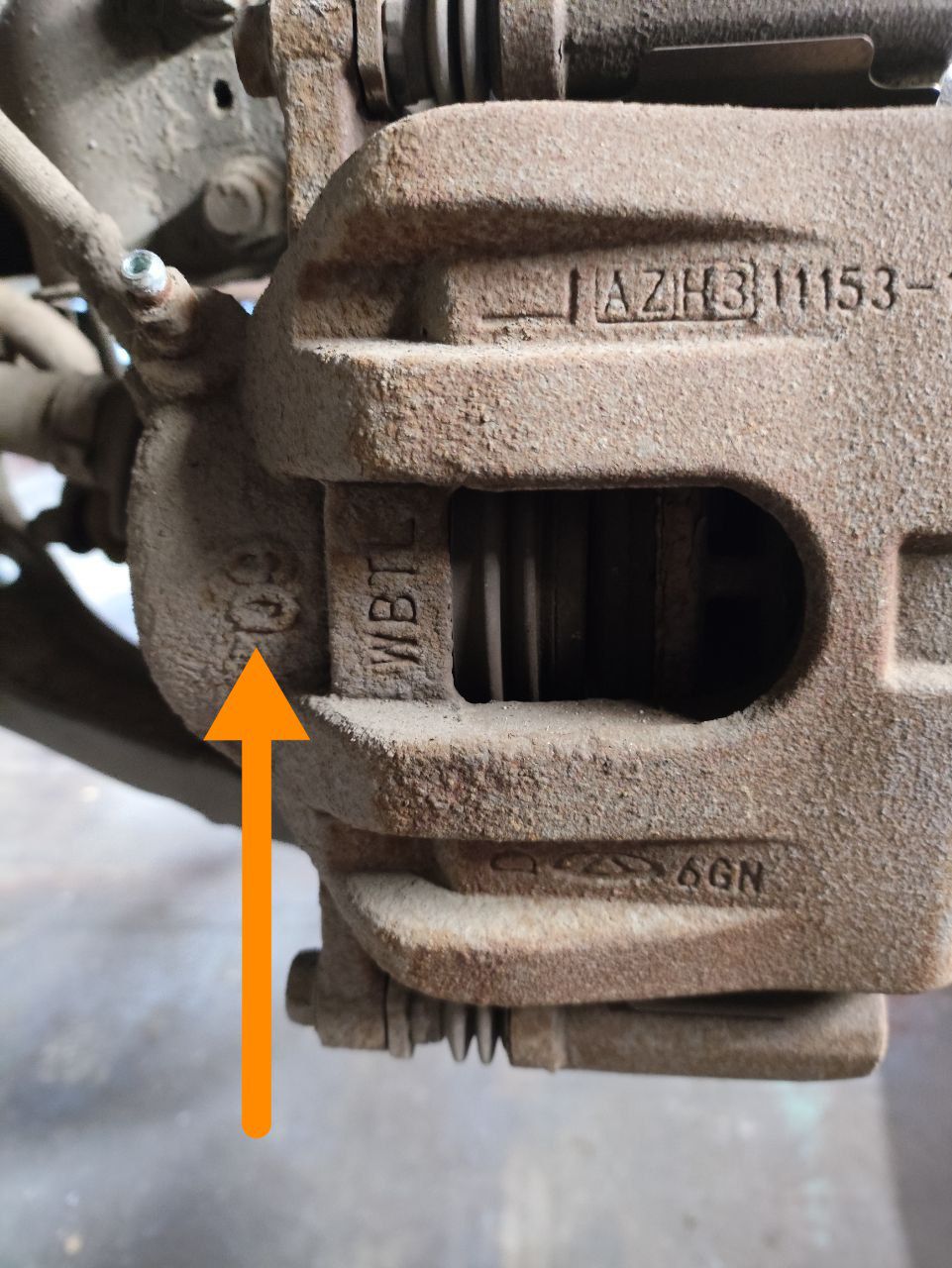 Чтобы правильно выбрать передние тормозные колодки, нужно знать, какой на вашем автомобиле суппорт: 57-й или 60-й. Он отлит на корпусе, и его можно увидеть, если до упора вывернуть колесо в ту или иную сторону, даже без снятия колеса.